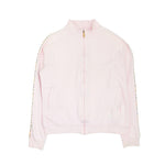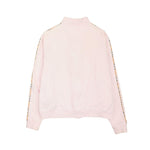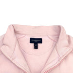 Burberry Golf zip-up sweater light pink cotton with front zip hardware in silver and gold and a beige novacheck piping down the arms.