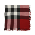 Burberry scarf in red, white, beige and black merino wool giant novacheck print with a fringe trim.