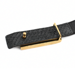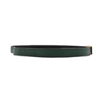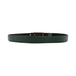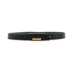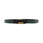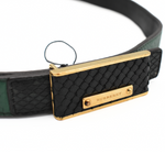 Burberry reversible belt in green leather with a black alternate side and a dark green snakeskin buckle with gold metal hardware.