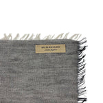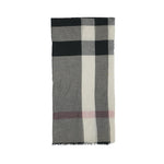 Burberry scarf in a grey, cream and pink novacheck printed modal-wool blend with a short fringe trim.