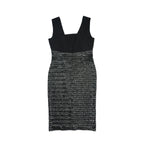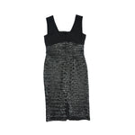 Burberry sleeveless body-con dress in black silk with black sequin covered skirt. Feature thick straps with a cutout on the bodice, a built-in bustier, a slit on the back of the skirt hem, and a hidden zipper closure on the back.