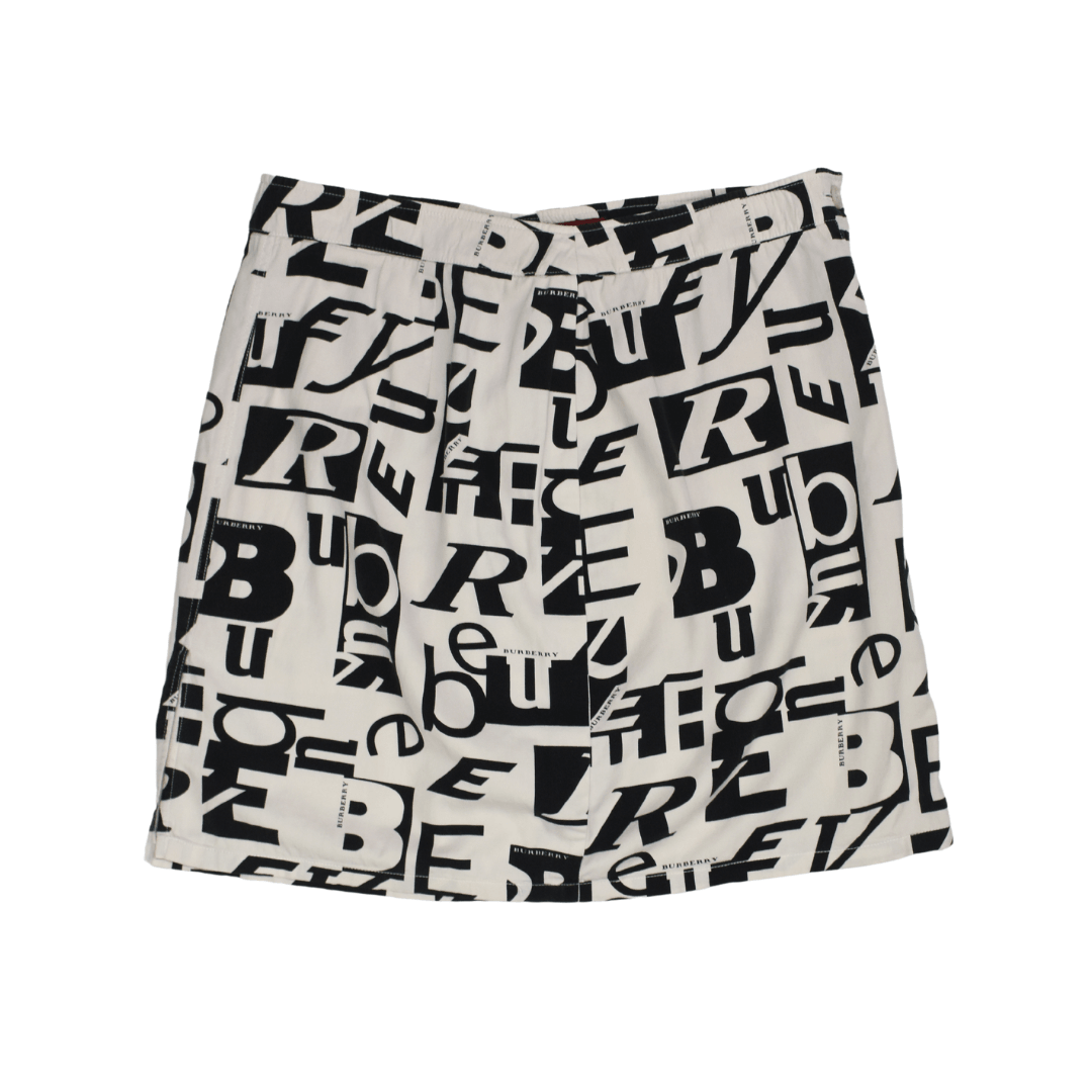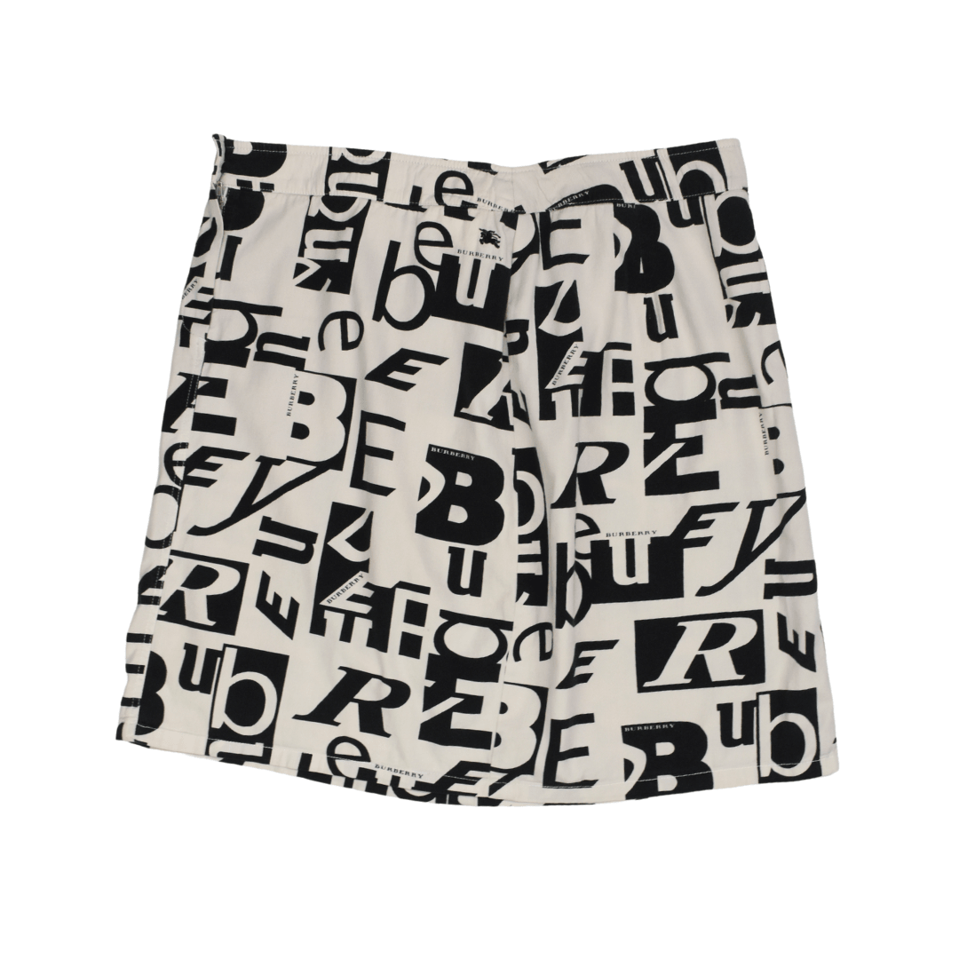 Burberry skirt in white cotton with an allover black abstract logo print and a hidden side zip closure.