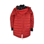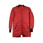 Canada Goose mid-length jacket in red nylon with a down-fill and a zip-off-hood.