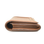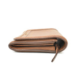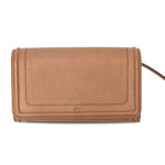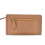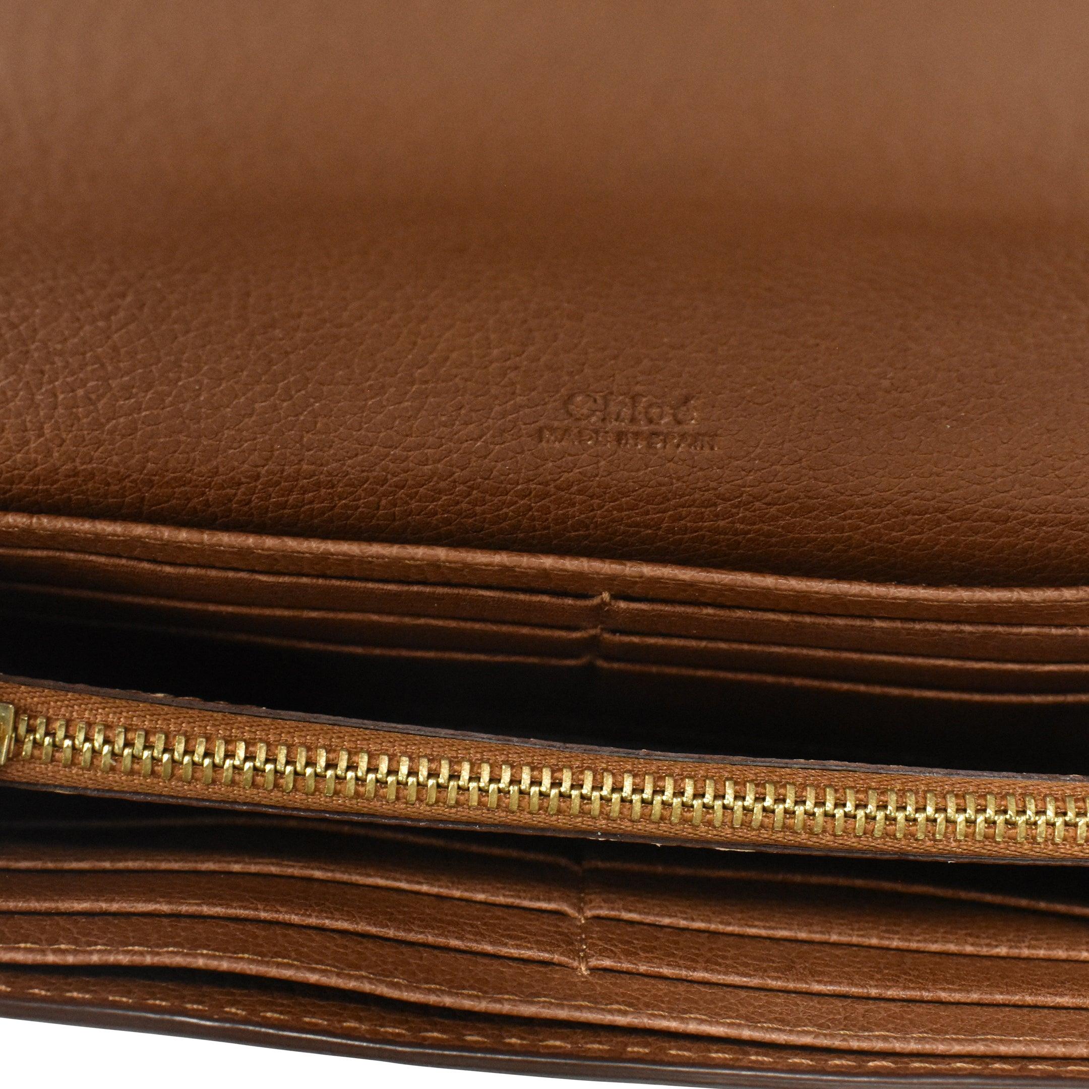 Chloe brown leather bi-fold wallet. Features single flap and gold logo hardware.