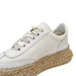 Christian Louboutin 'Espasneak' sneakers in white canvas with platform espadrille soles, leather trim, and a gold foil 'CL Paris' logo across the sides.