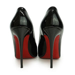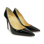 Christian Louboutin 'Kate' pumps in black patent leather with a stiletto heel and a pointed toe.