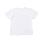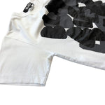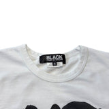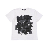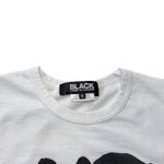 Comme Des Garcons BLACK white t-shirt with black and grey graphic on the chest.