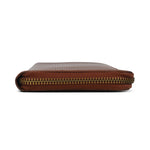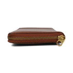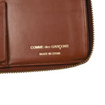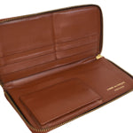 Comme Des Garcons continental wallet in brown diamond quilted leather, zip closure in gunmetal hardware, multiple card slots, coin pocket and cash slot.