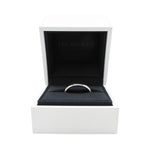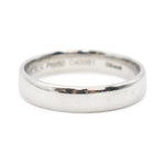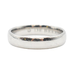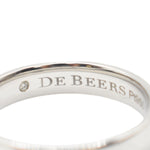 De Beers thin platinum wedding band with a small diamond on the inner band.
