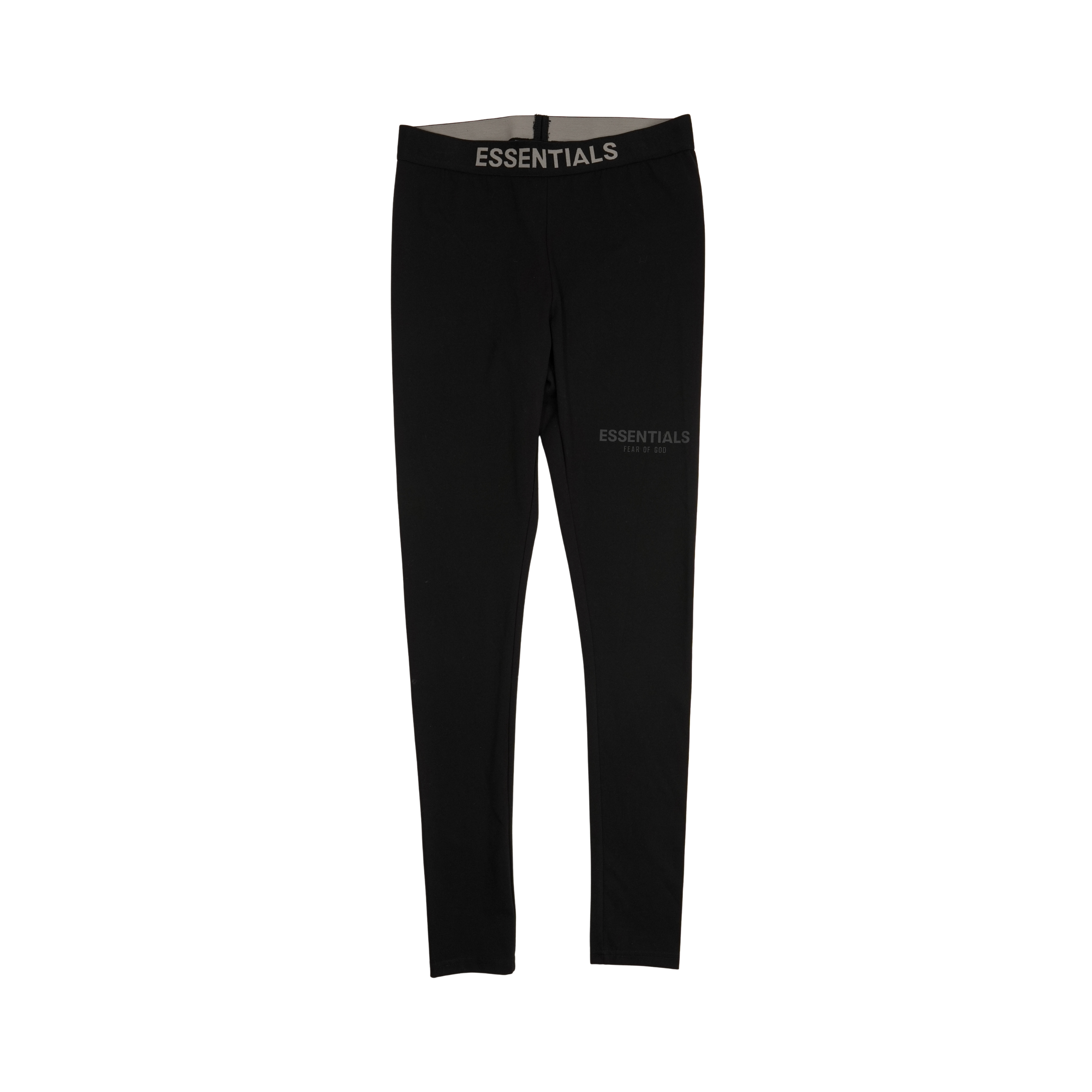 Essentials high waisted leggings in black featuring a logo waistband and a tonal logo on thigh.