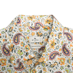 Etro button-down shirt in white cotton with an all-over orange and multicolour floral paisley print and pearlescent buttons.