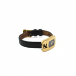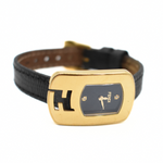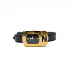 Fendi 'Chameleon' watch in black lizard embossed leather with a gold-toned stainless steel face with 'FF' cutout detailing and a black face.