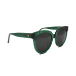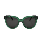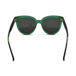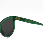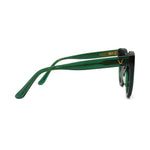 Gentle Monster 'Illusion' sunglasses in dark green acetate with rounded black lenses and gold logo hardware on the arms.