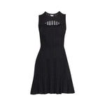 Givenchy '4G' sleeveless black mini dress in in ribbed knit with Givenchy monogram knit panels. Features a cutout above the bust and slightly flared skirt.