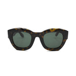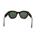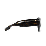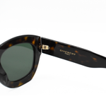 Givenchy 'GV Day' wayfarer sunglasses in dark brown and black tortoise printed acetate with a slight cat eye lens and a gold logo on the arms.