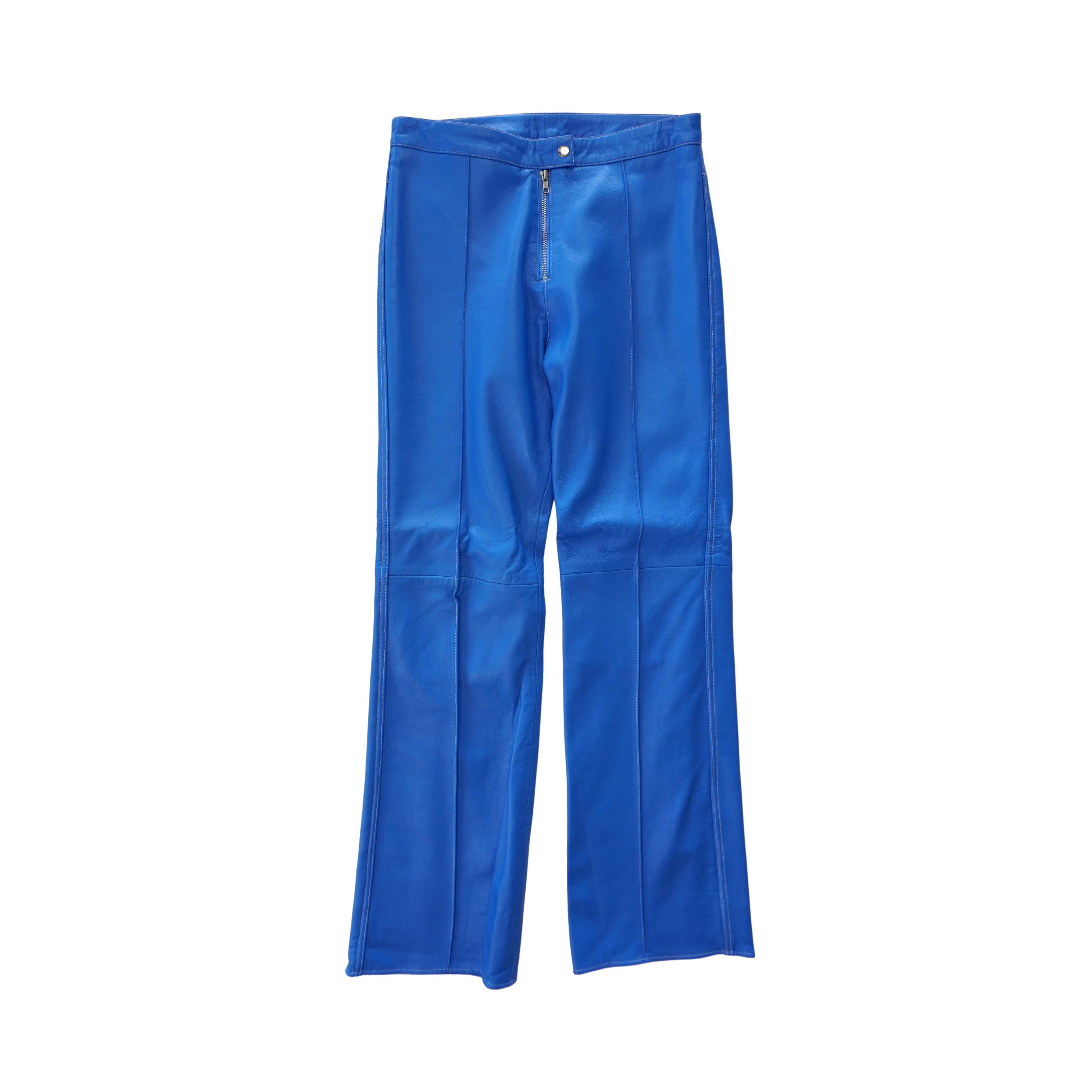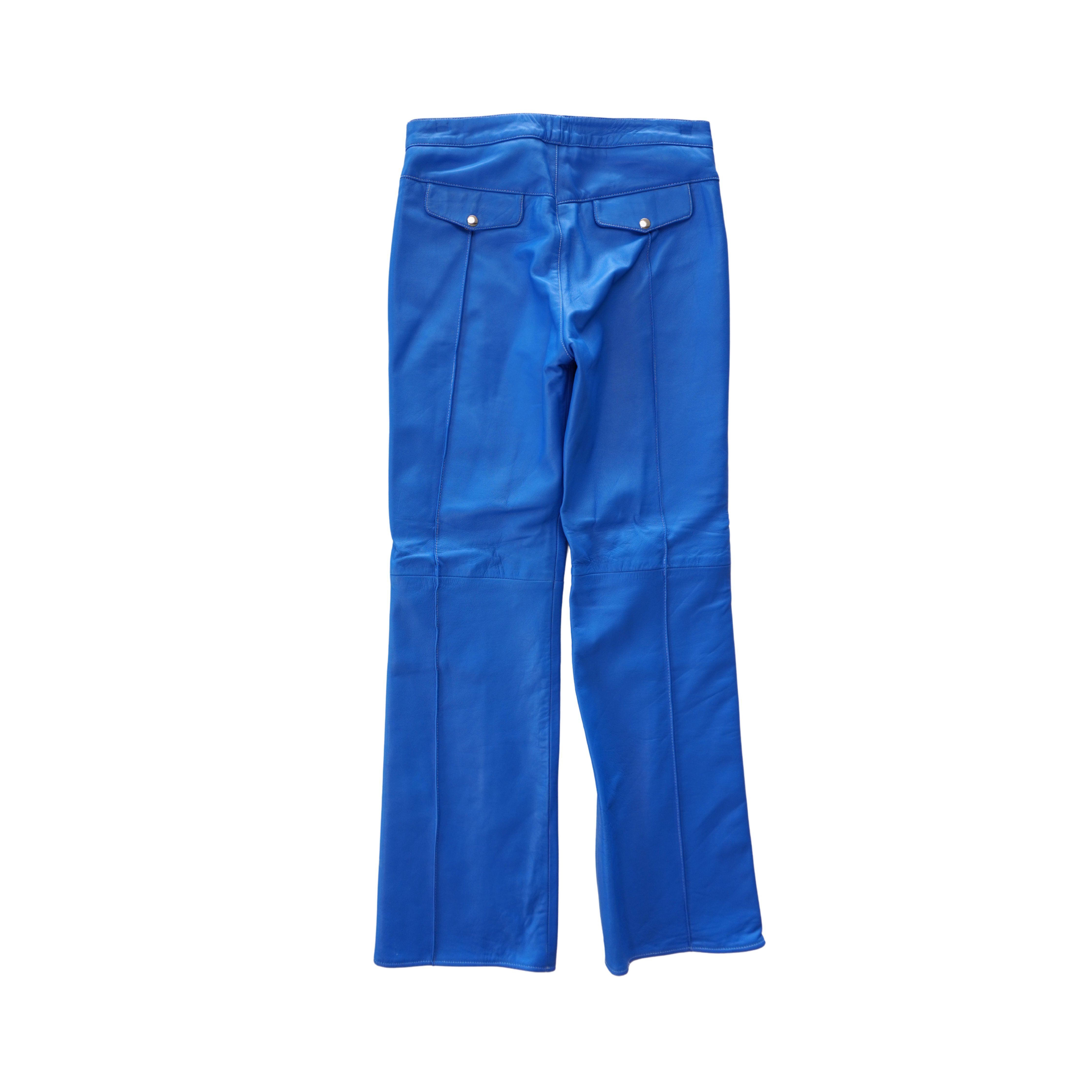 Hosbjerg 'Debbie' straight-leg pants in blue leather with raised trim and two back flap pockets.