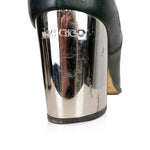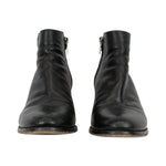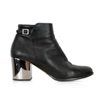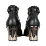 Jimmy Choo black leather ankle boots with silver metal heels and zippers down the inner ankle.