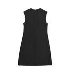 Louis Vuitton Uniforms shift dress in black polyester with stitch detailing and front zip pockets in black hardware.