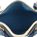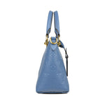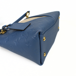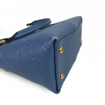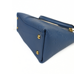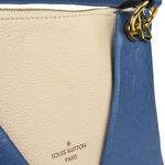 Louis Vuitton 'V Tote BB' handbag in blue monogram empriente leather with cream leather panels and gold hardware. Features double rolled handles and a removable shoulder strap. The bag has a two-way zip closure and blue suede lining wth two slip pockets.