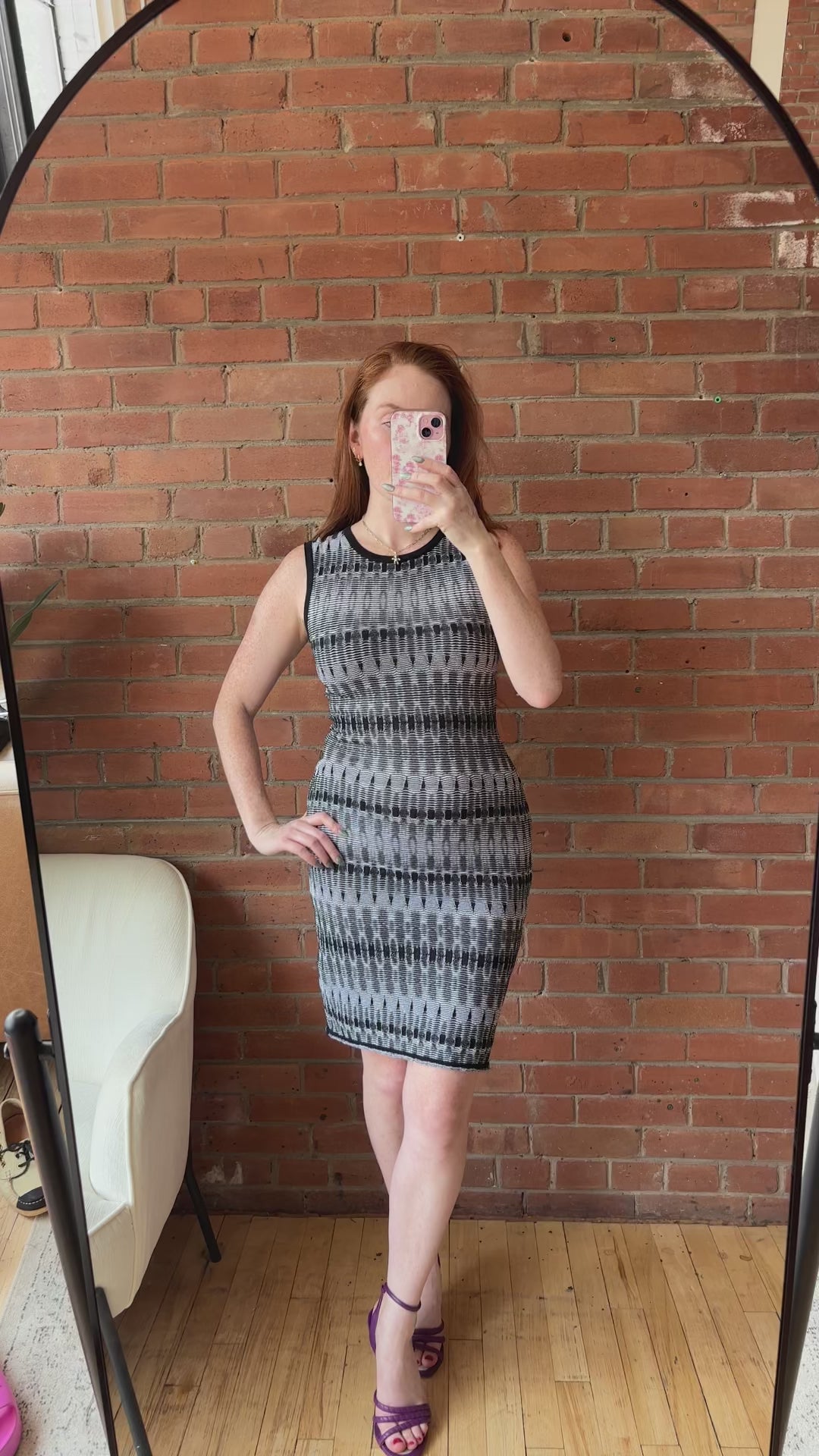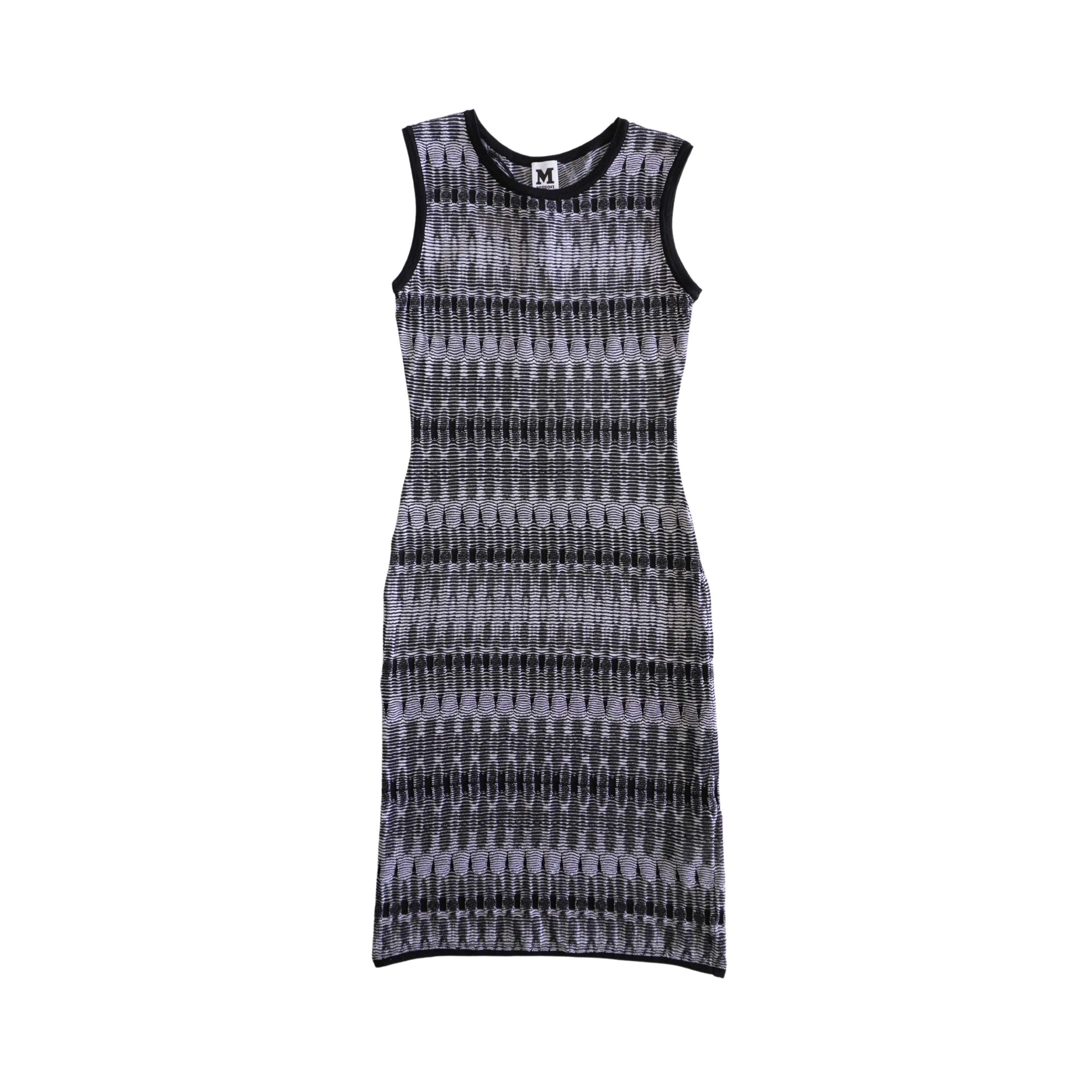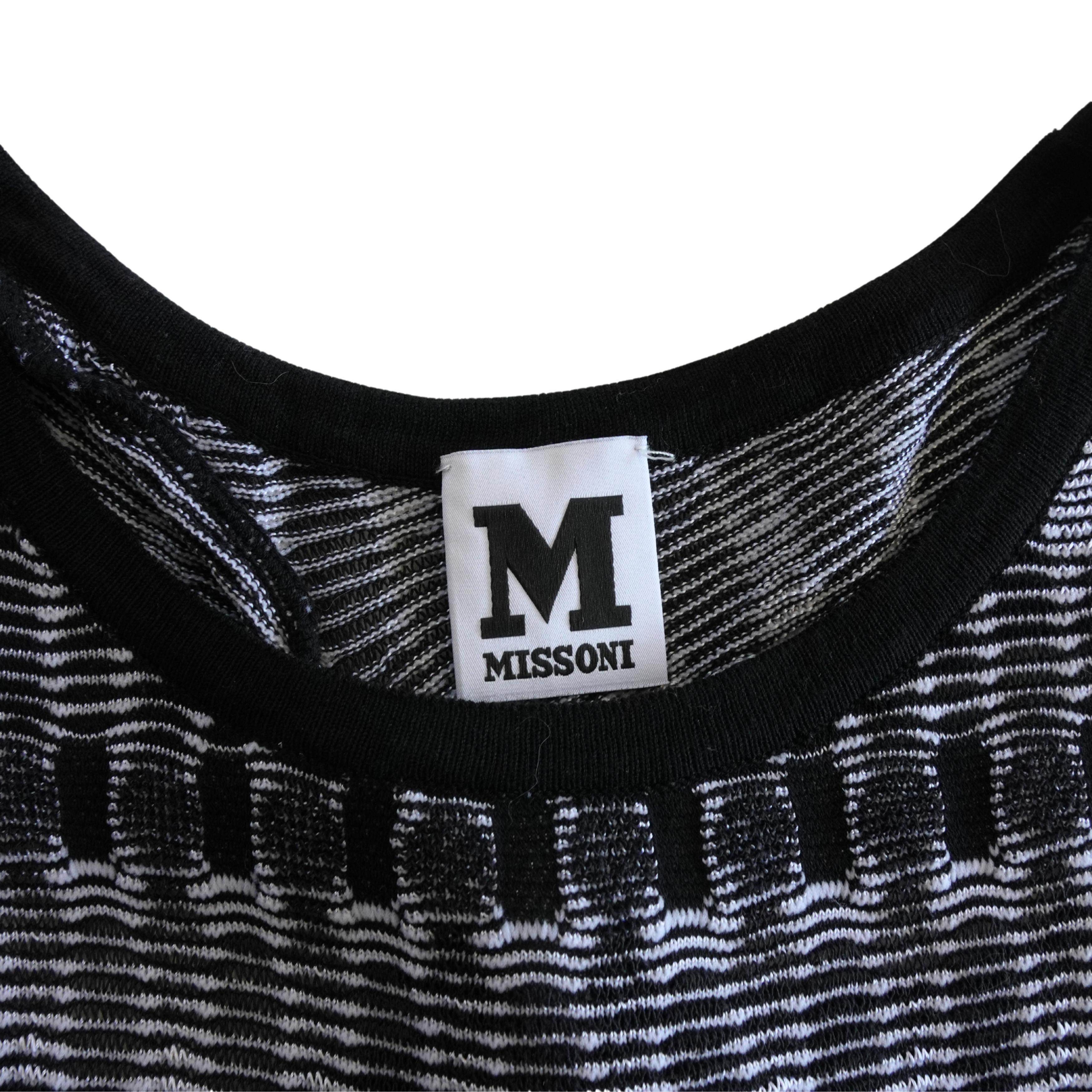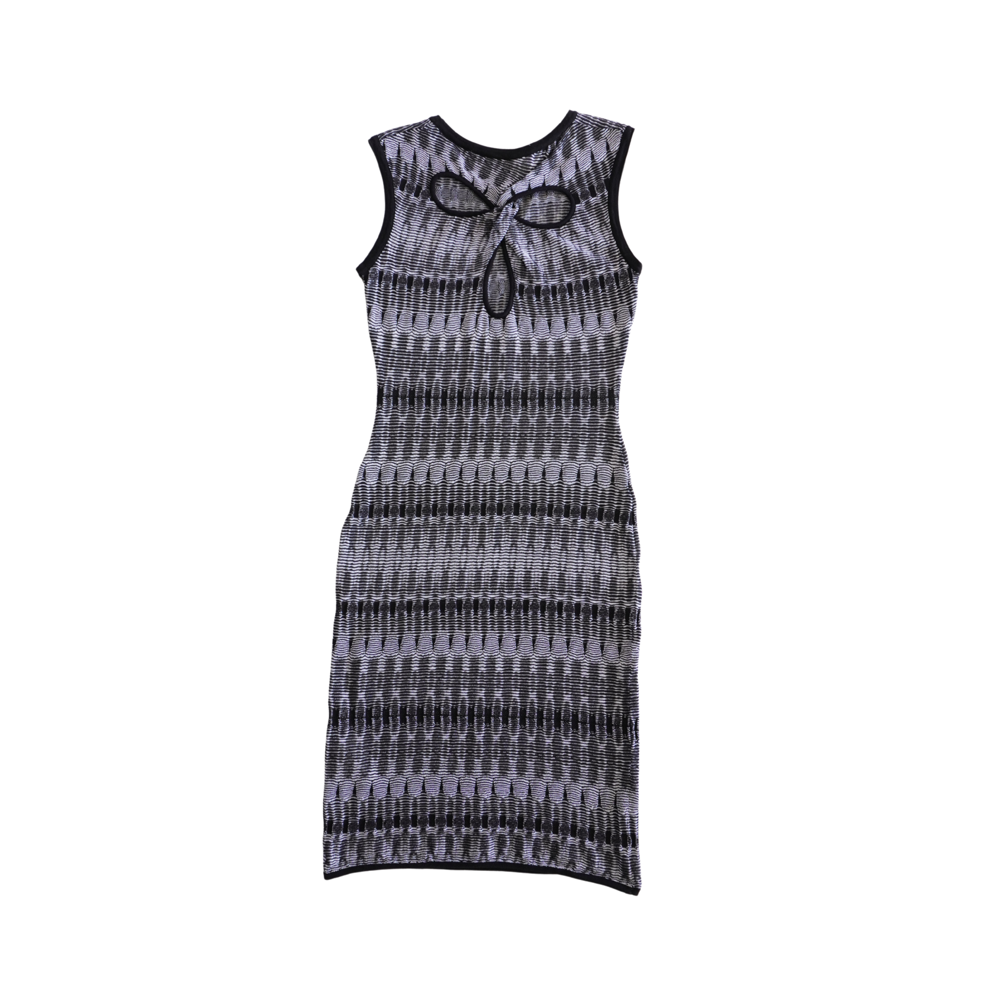M Missoni black and white abstract knit knee length dress with twisted eyelet cut outs on the upper back.