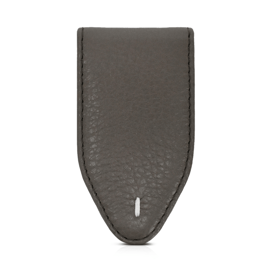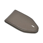 Maison Margiela money clip wallet in taupe leather with a magnetic closure and white stitch detailing.