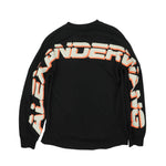 Alexander Wang Sweater in black knit with white and orange oversized logo graphic on the back.