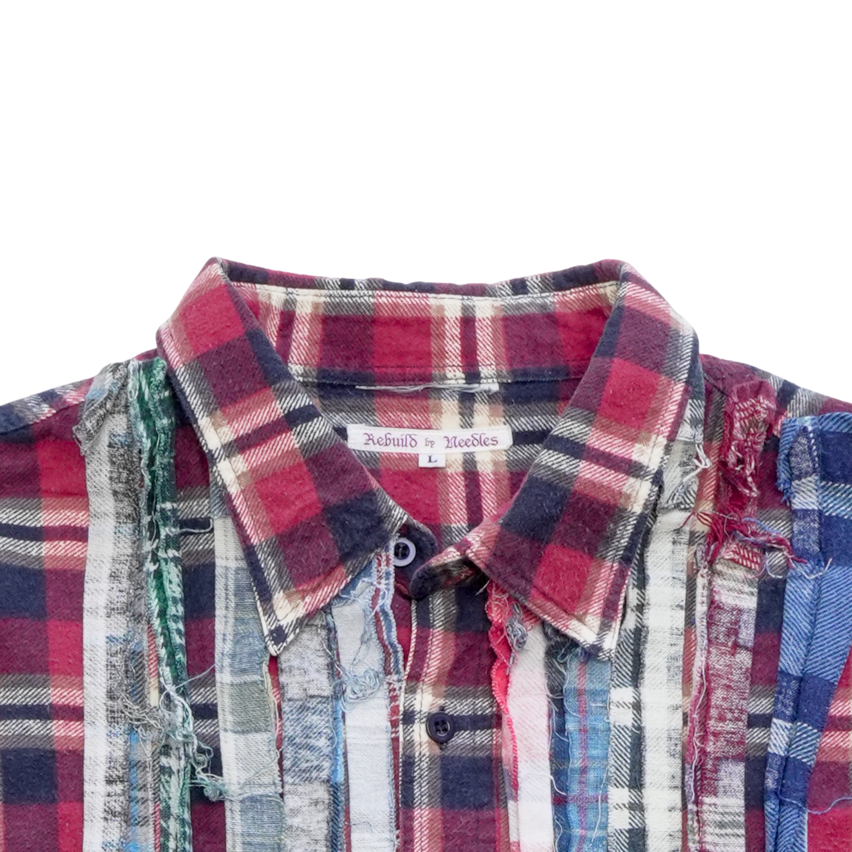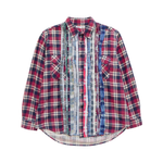Rebuild by Needles deconstructed long sleeve flannel button down shirt with distressed flannel panels on the front.