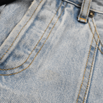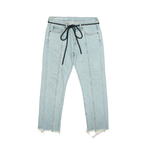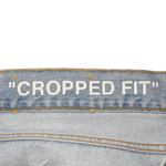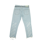 Off-White Jeans straight leg cropped fit jeans in light wash denim with a black rope belt detail.