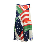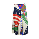 Polo by Ralph Lauren maxi skirt in cream silk with a red, green and blue abstract American flag print and a flat elastic waistband.