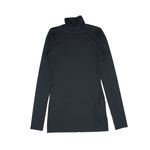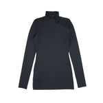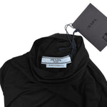 Prada long-sleeve top in black stretch poly with a turtleneck and raw hems.