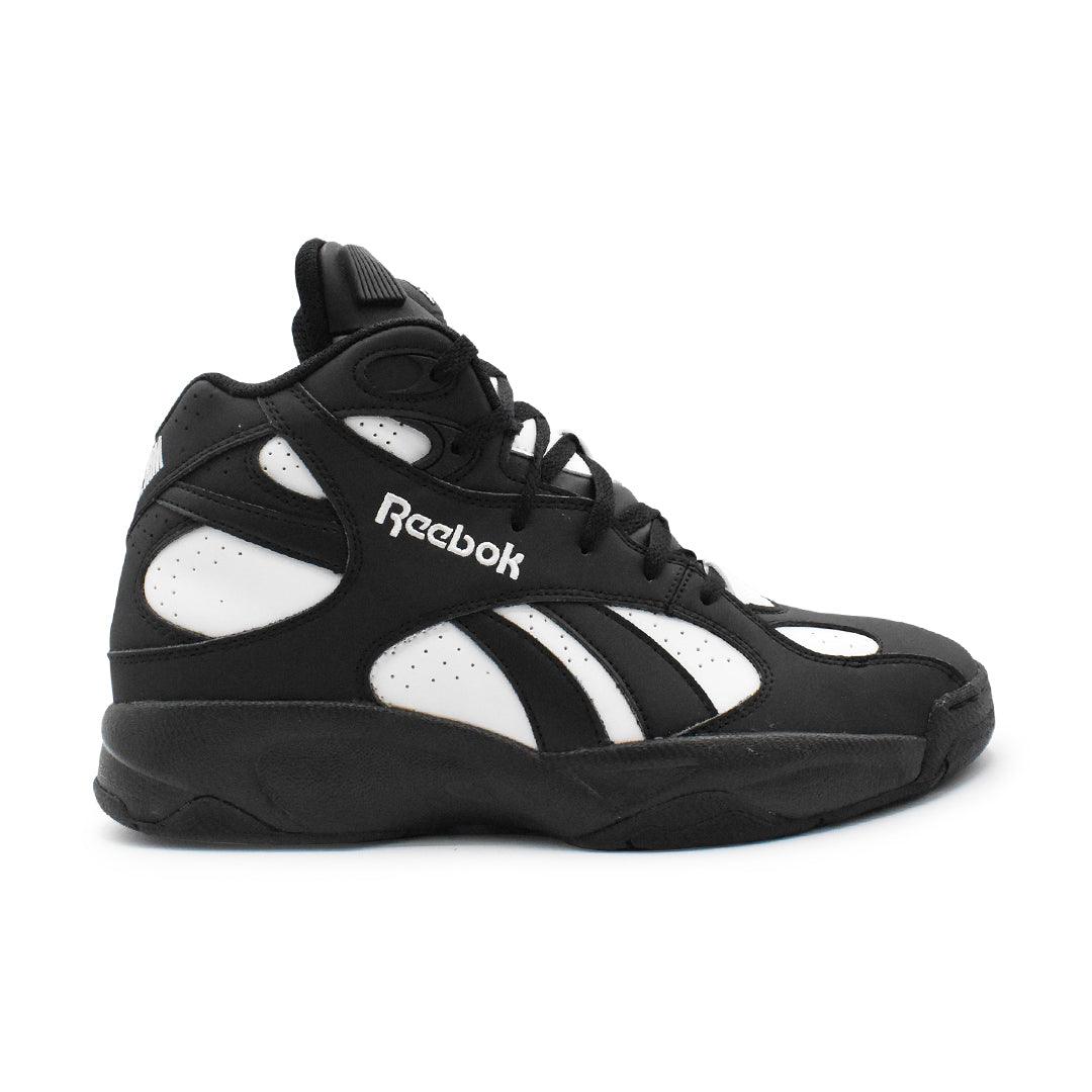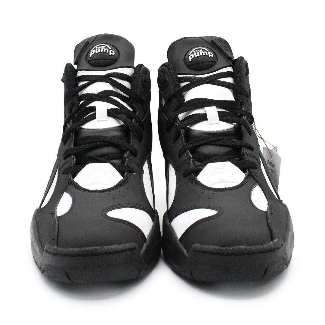 Reebok 'ATR Pump' high-top sneakers in black and white leather with thick rubber soles.