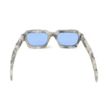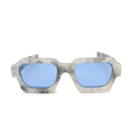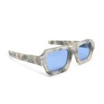 Retrosuperfuture 'Caro' Sunglasses in light grey and beige marble acetate frame with blue lens.