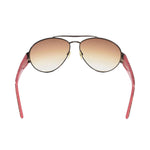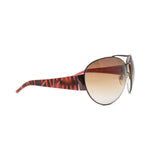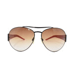 Just Cavalli aviator sunglasses with a brown metal frame, brown lenses, and purple and brown engraved logo plastic arms.
