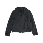 Rundholz light-weight jacket in black washed cotton with an asymmetrical design, side pockets, and hidden front snap buttons.