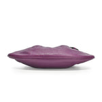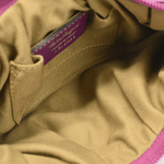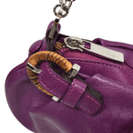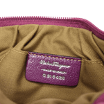 Salvatore Ferragamo Shoulder Bag in purple leather with pleated detailing and double shoulder straps in silver hardware. Features signature buckle detailing in orange leather and brown canvas lining with an inner open pocket.
