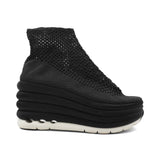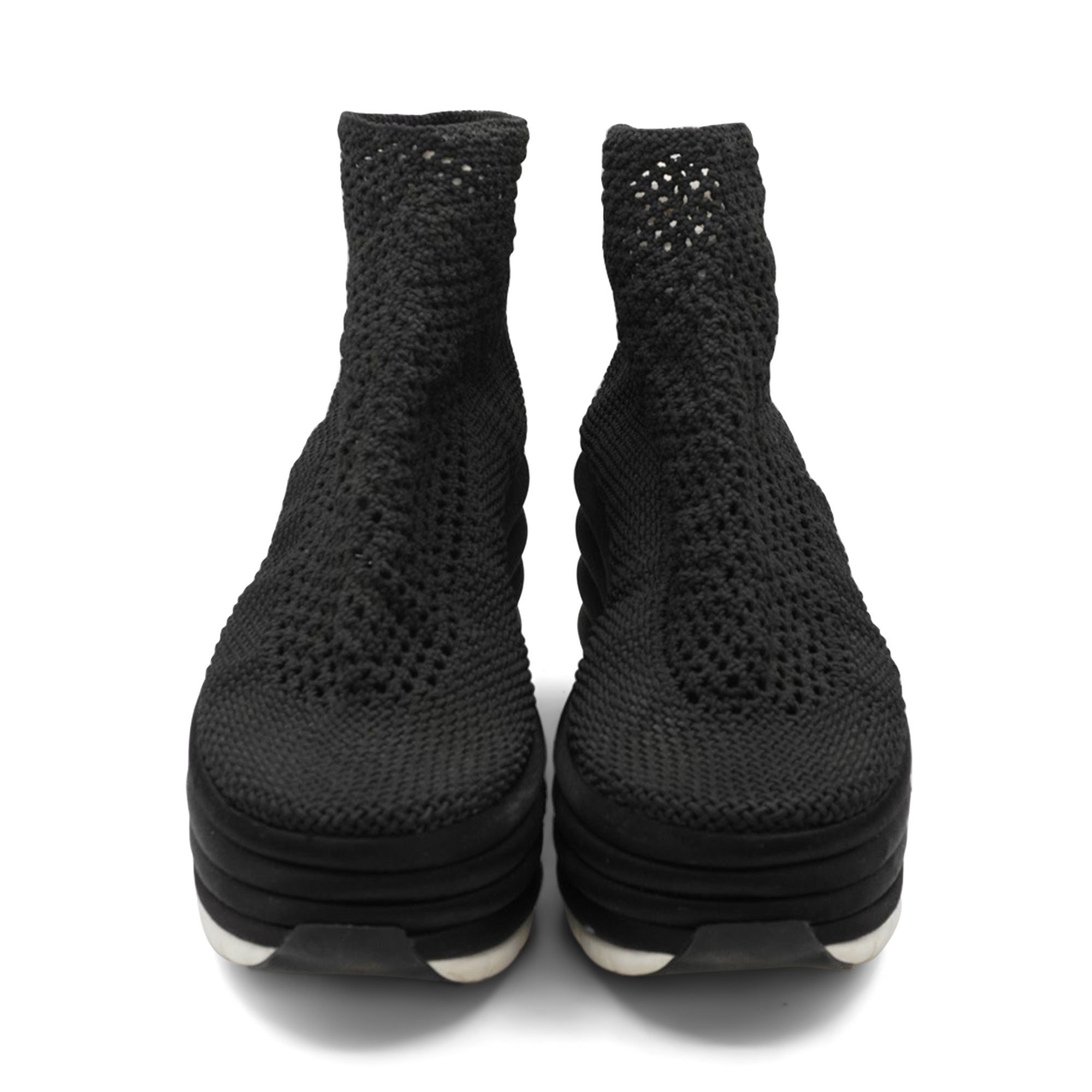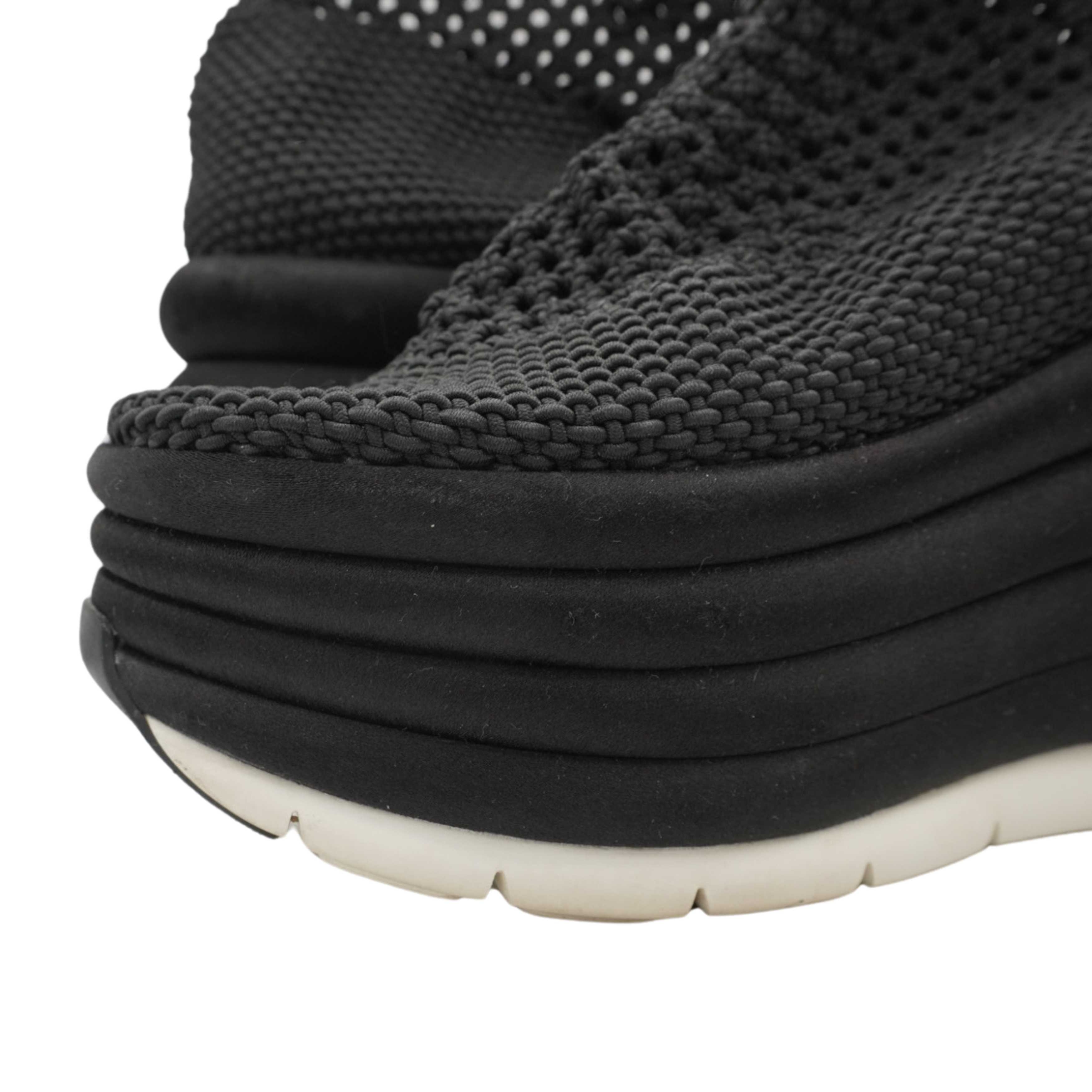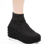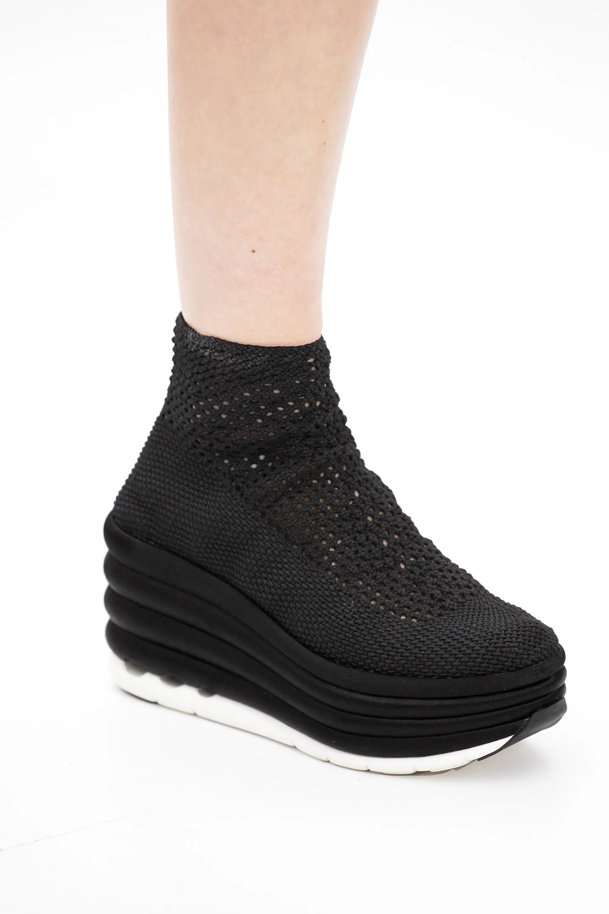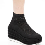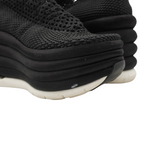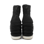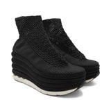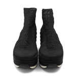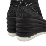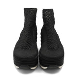 Salvatore Ferragamo 'Spring Summer 2017' runway platform wedges with an elastic black woven upper and satin covered bubble soles.