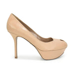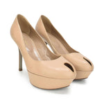 Sergio Rossi platform heels in nude leather. Features a small peep-toe.
