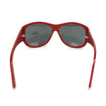 Stella McCartney rounded sunglasses in red acetate with silver logo hardware on the arms.