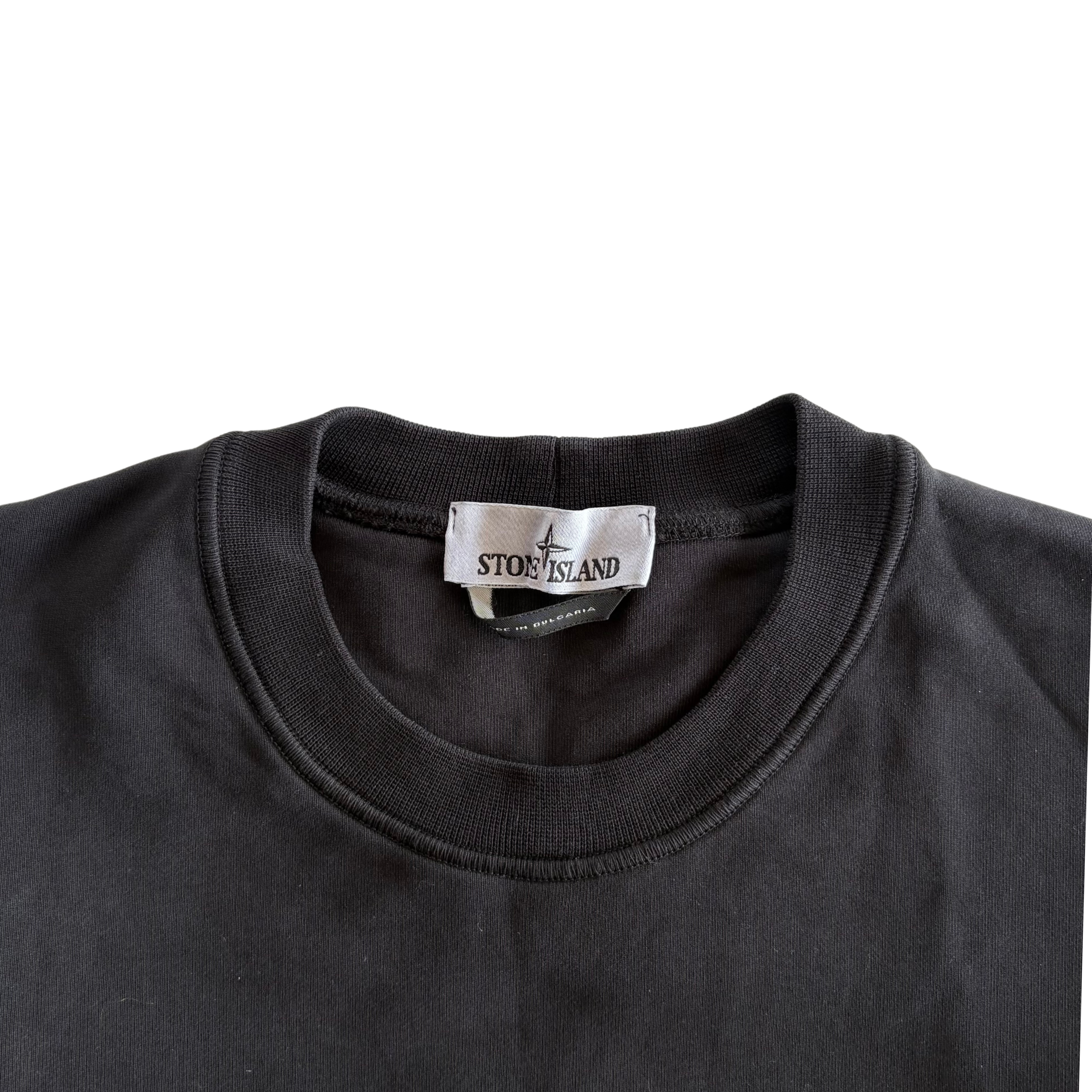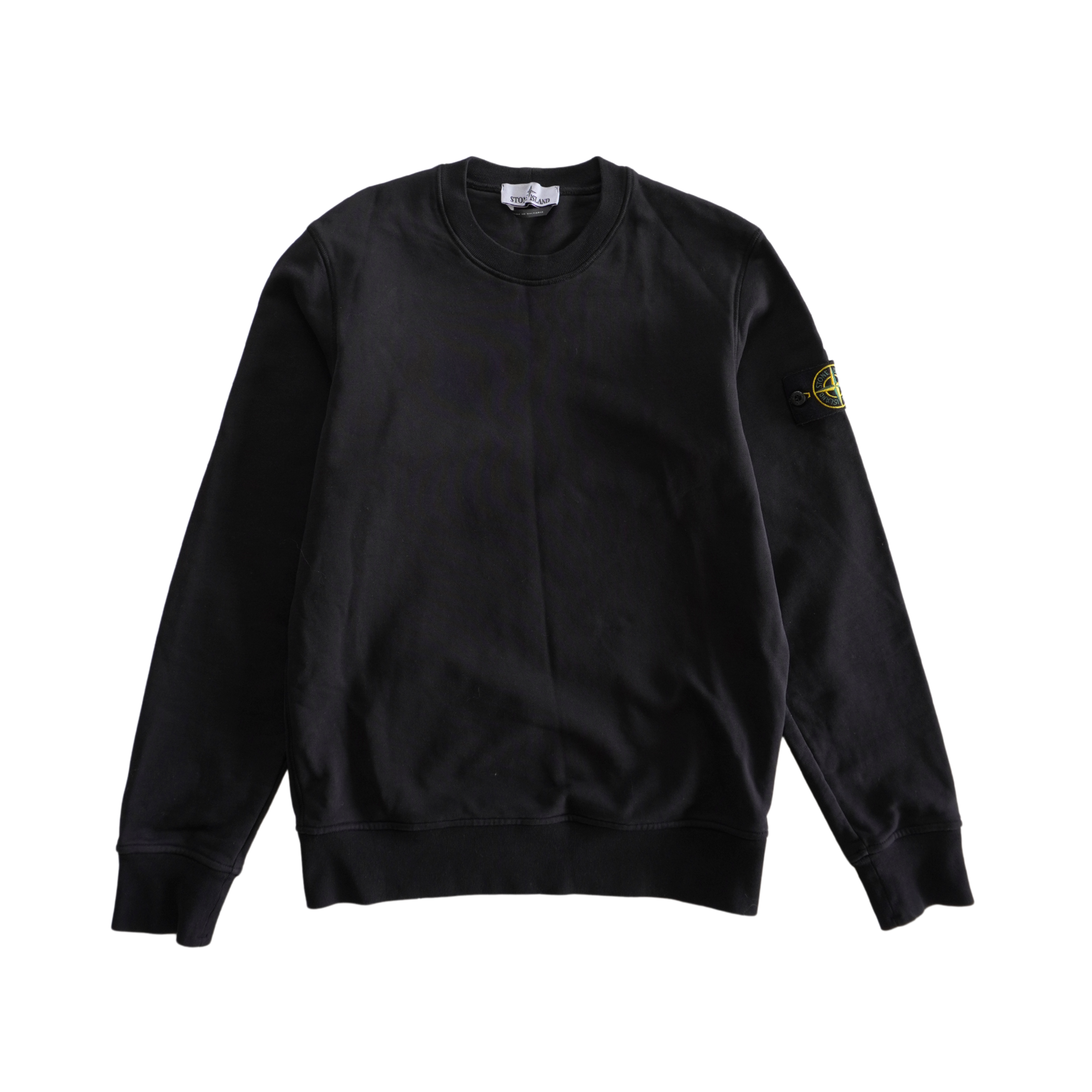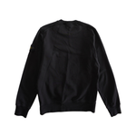 Stone Island crewneck sweater in black cotton with a logo arm patch, ribbed hem, cuffs and neckline.