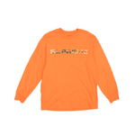 Supreme long-sleeve top in orange cotton with an embroidered logo graphic on the chest in green, white, black and yellow.