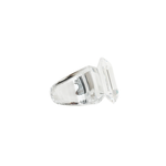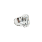 Swarovski 'Lucent' clear cocktail ring with faceted crystal exterior connected to an oversized octagonal crystal and stainless steel inner band.