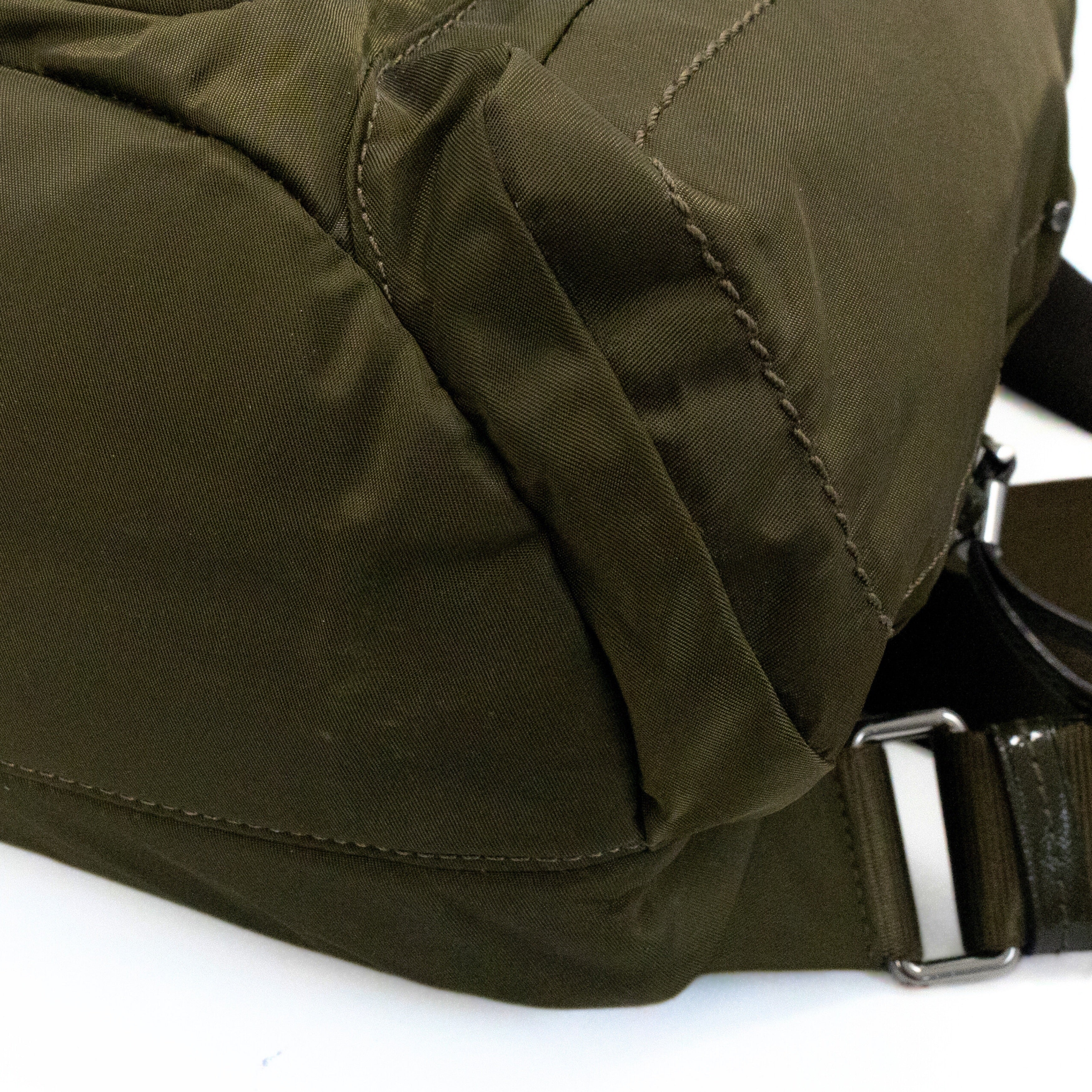 Great. Light scratching on nylon, light wear on hardware, small stains on inner lining.