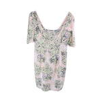 Versace Collection Dress short sleeve dress in light pink, grey and yellow gears graphic with open back detail.