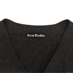 Acne cardigan sweater in brown wool with brown buttons and a face logo embroidered on the chest.