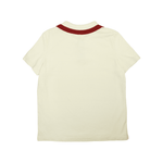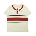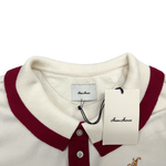 Adidem Asterisks polo top in cream cotton with red, blue and orange stripes and an embroidered logo on the chest.