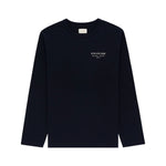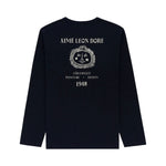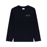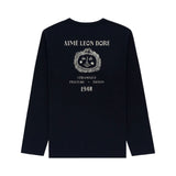 Aime Leon Dore 'Artiste' navy long-sleeve t-shirt with white 'Ceramique' logo graphics on the front and back of the shirt.