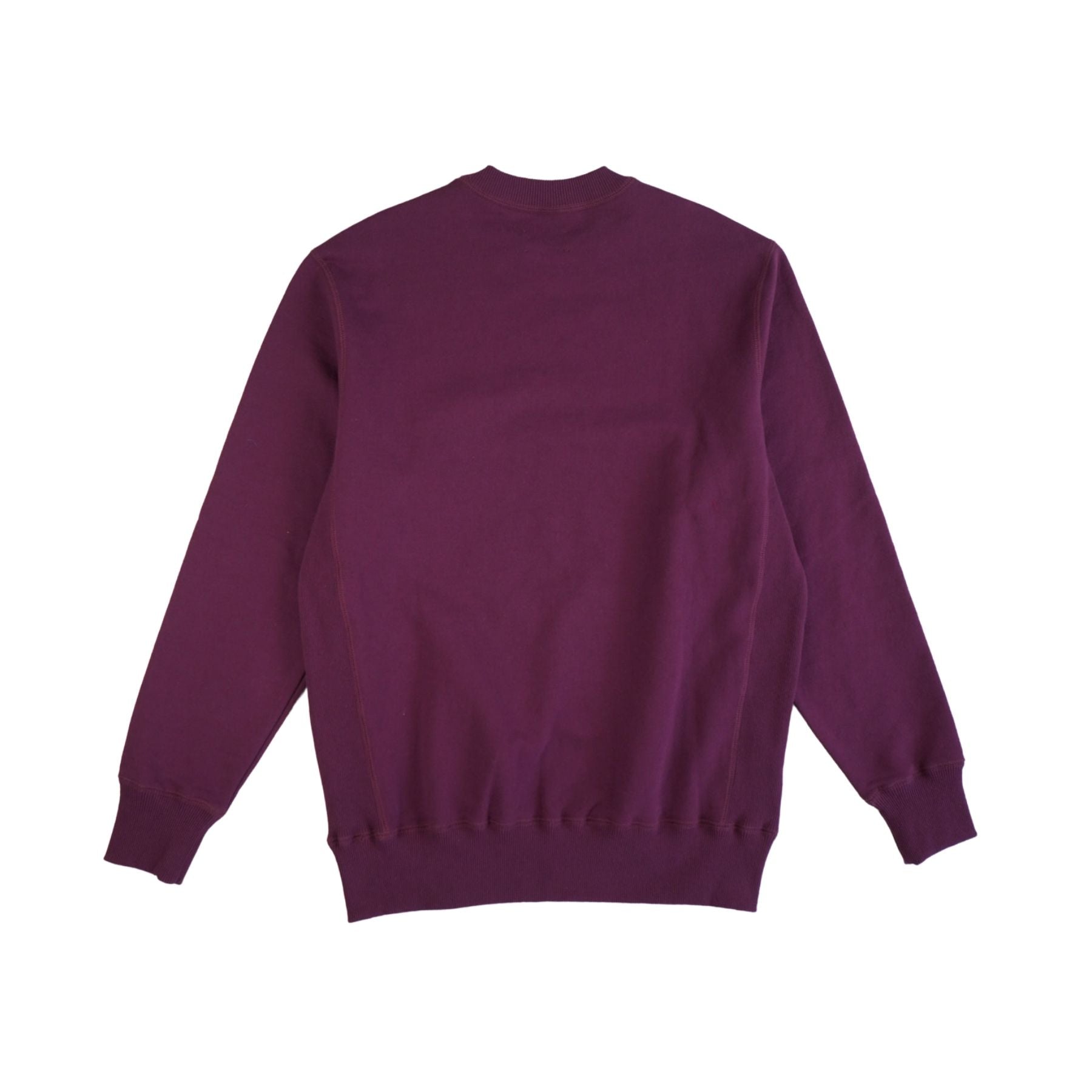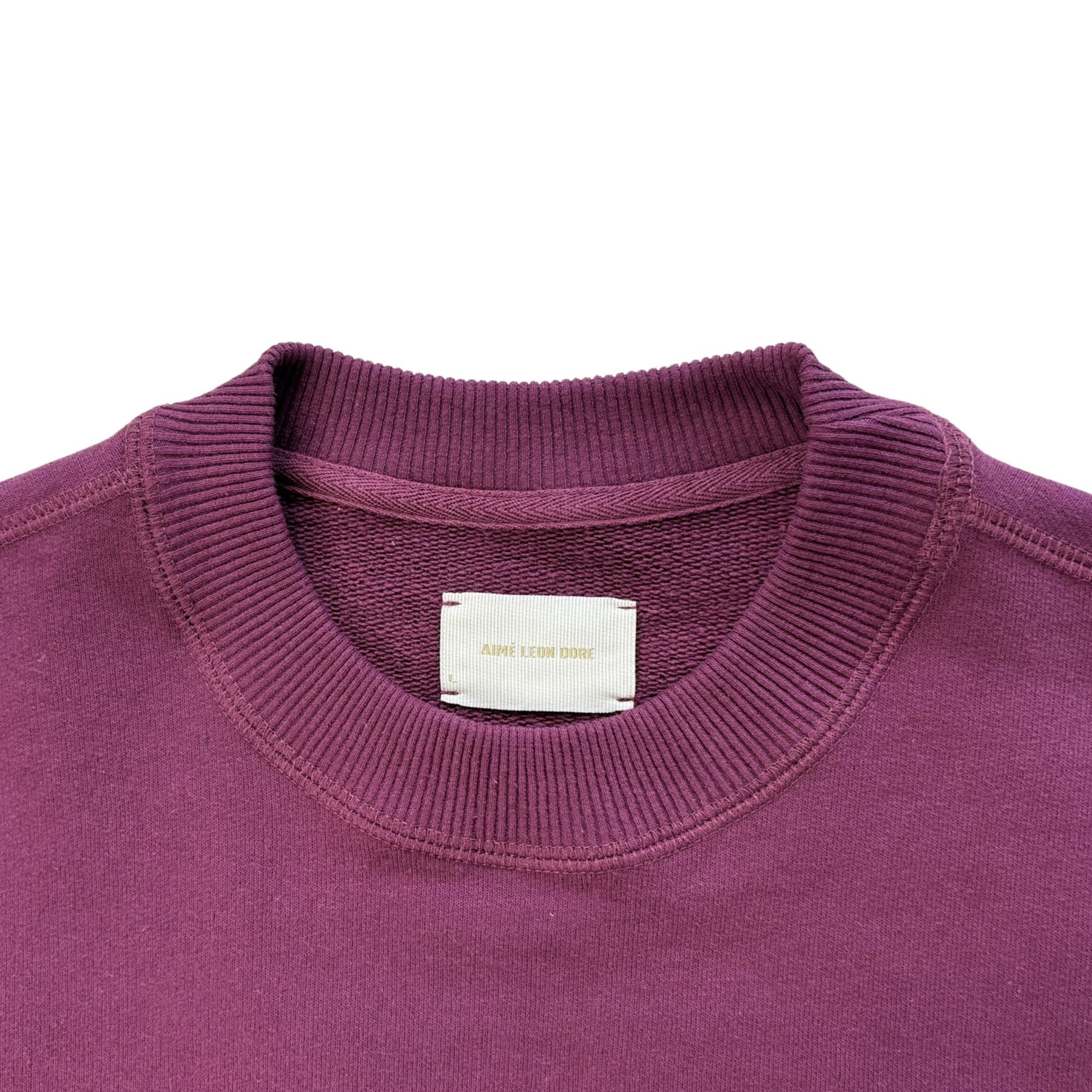 Aime Leon Dore burgundy crewneck sweatshirt with small tonal logo embroidery on the chest.
