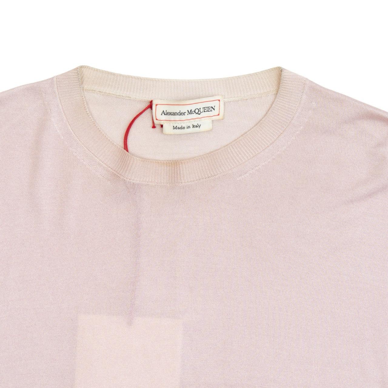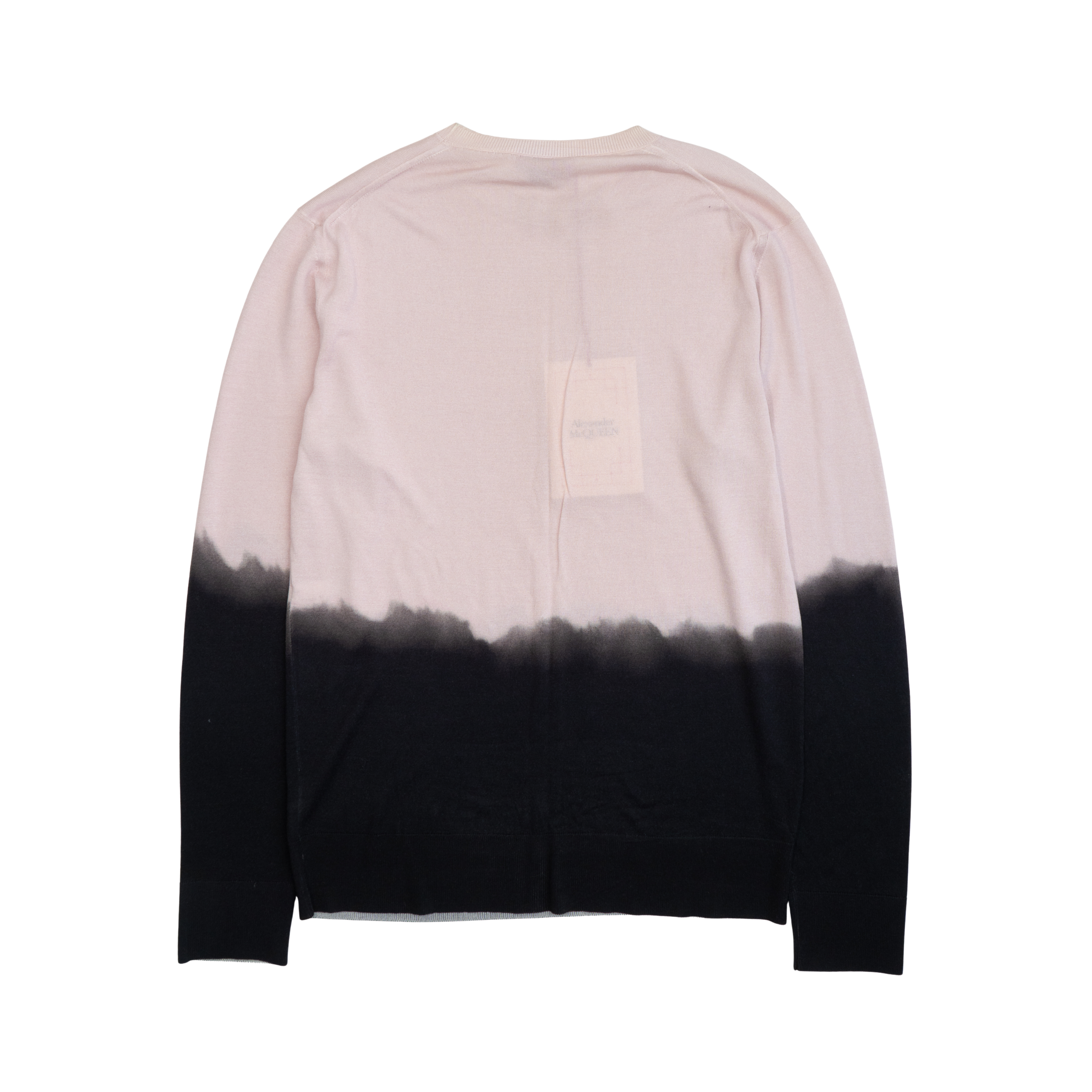 Alexander McQueen crewneck sweater in pink to black ombre silk knit with ribbed trim.