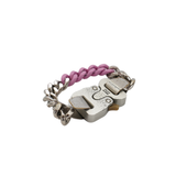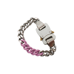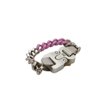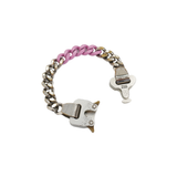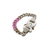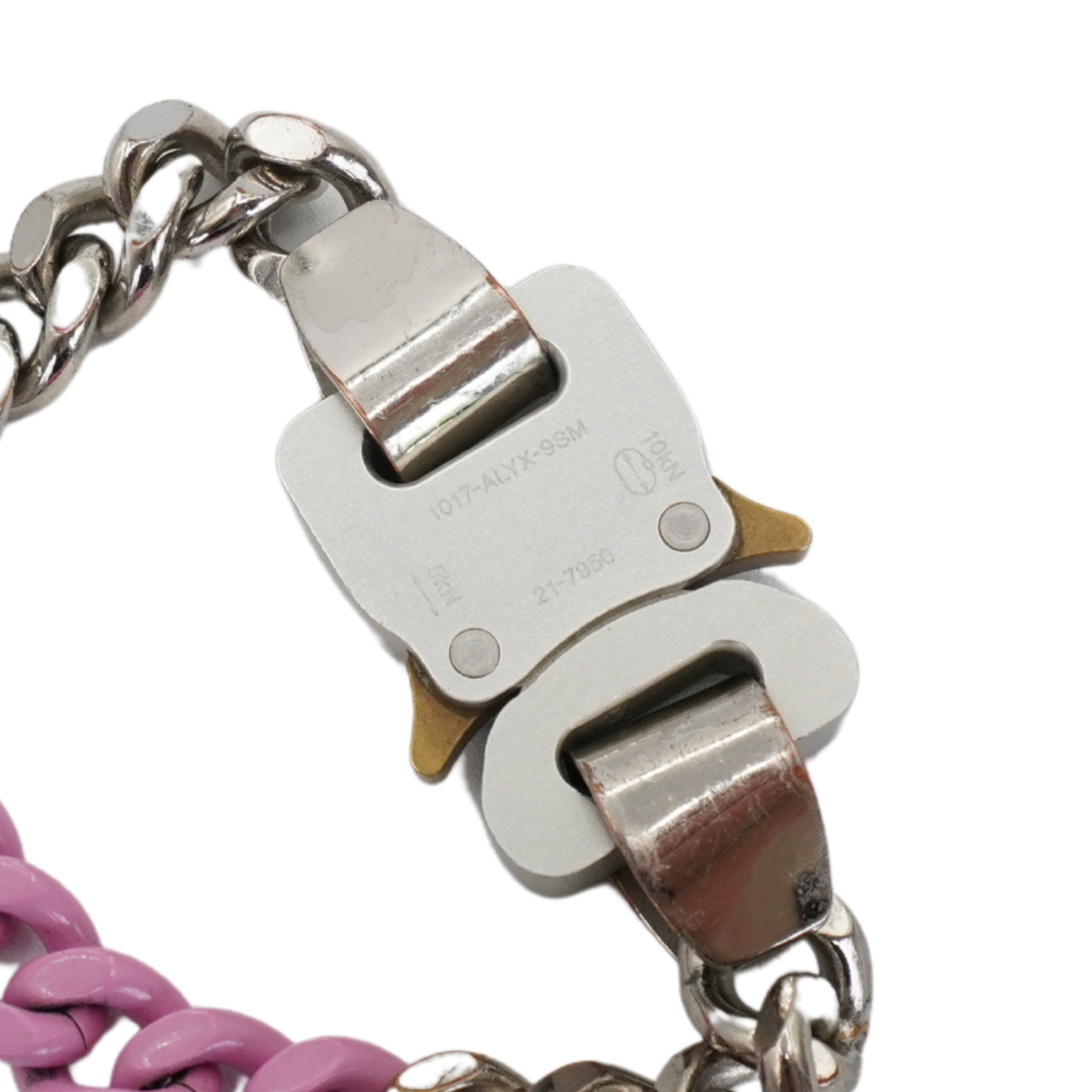 Alyx 'Buckle' bracelet in silver toned chain link metal with a pink enamel coating and a signature 'Rollercoaster' buckle clasp.