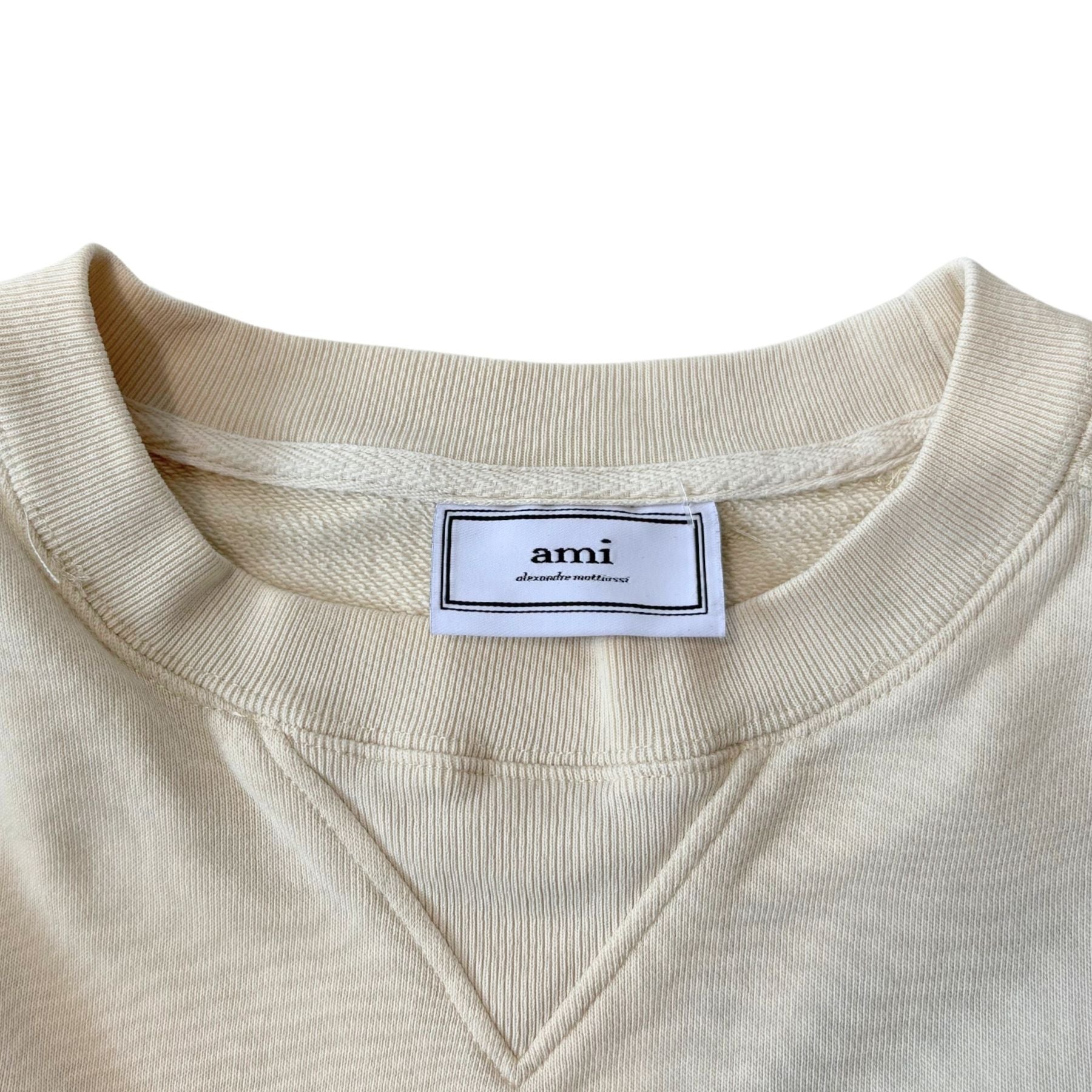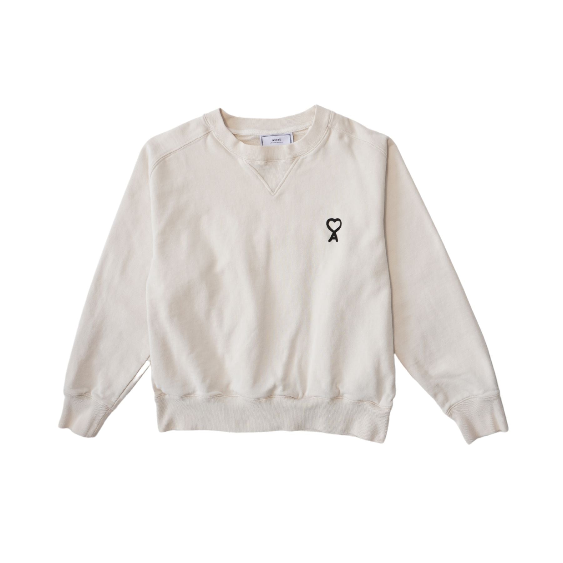 Ami crewneck sweater in cream cotton with a black heart logo embroidery on the chest.